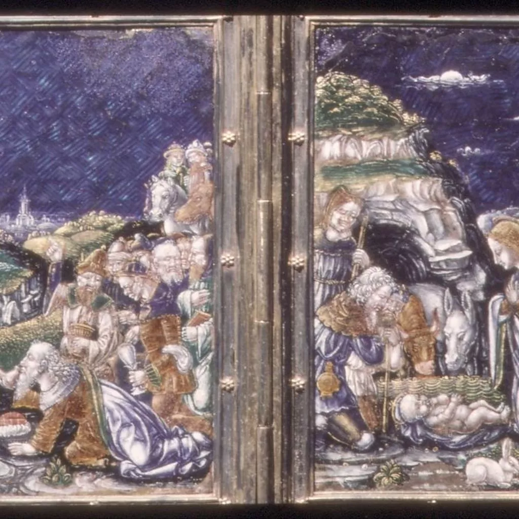 The technique of enamel painting is thought to have been introduced into Lombardy between 1470 and 1480. The style here is close to that of several miniature painters who worked for the Milanese ducal court of the Sforza. The frame is a sixteenth-century addition.