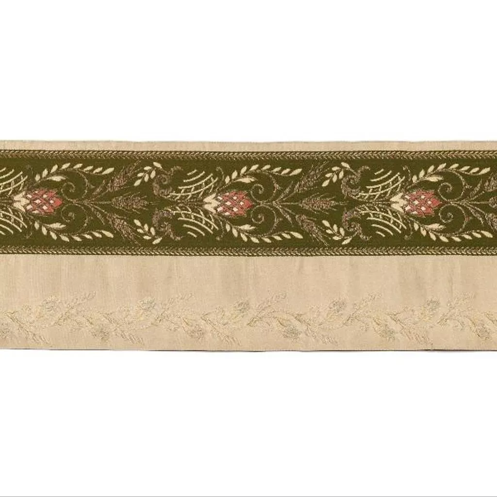 Ruban en soie boîteux, taffetas beige et vert foncé damassé et satin broché soie et or