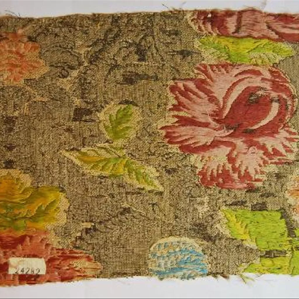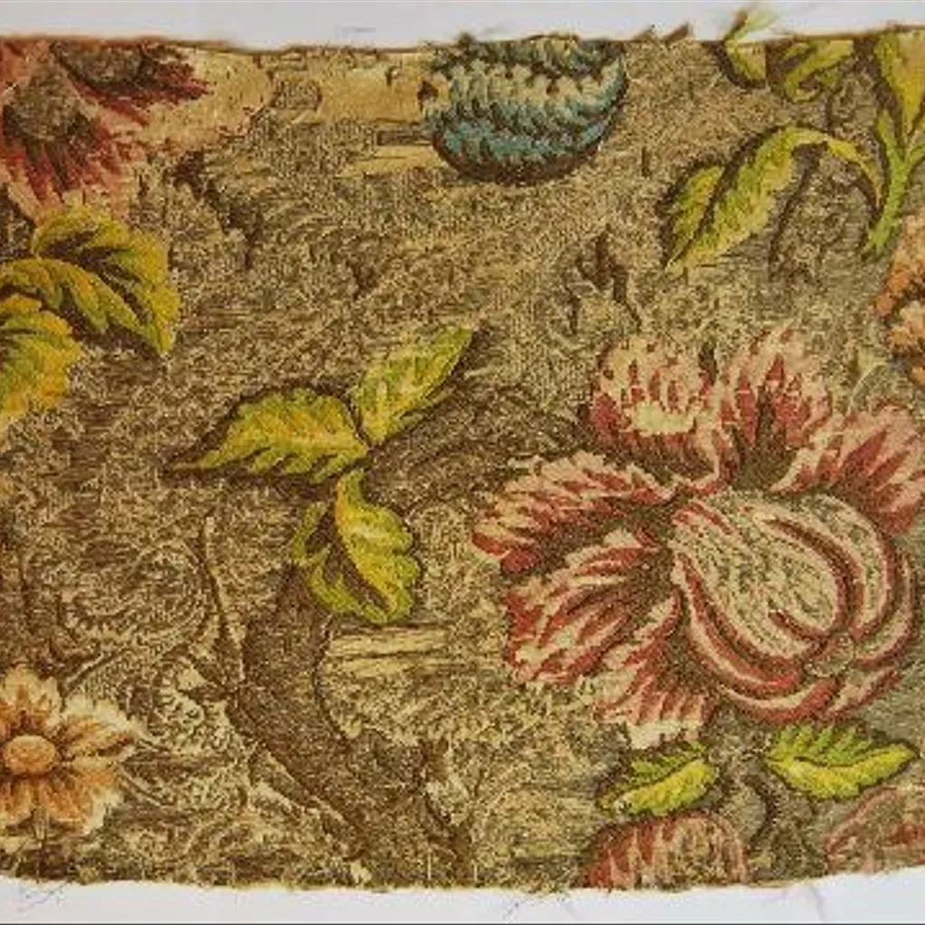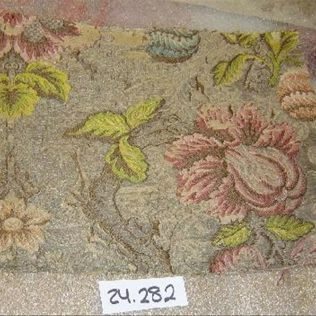 Por sus características técnicas y decorativas se puede incluir en el grupo de tejidos naturalistas. Los tejidos con este tipo datan del segundo cuarto del siglo XVIII y eran utilizados generalmente para la indumentaria. Son una muestra del gusto naturalista que, irradiando desde Francia, marcó las producciones textiles europeas desde 1730 a 1750. Se caracterizan por estar decorados con motivos florales y vegetales en los que se ha tratado de plasmar la variedad cromática, la armonía y las diferentes texturas de la naturaleza, en un intento de representar los motivos florales y vegetales del modo más realista posible, aunque en numerosas ocasiones se trate de formas inventadas, mezcla de varias especies, utilizando una gran riqueza de colorido y un "rapport" de grandes dimensiones. Las sedas tejidas, en competición con los bordados, se convirtieron en un muestrario inagotable de composiciones, donde las flores se disponen libremente sobre la superficie, o bien lo hacían recogidas en bouquets o entrelazados con cintas. Además, en las decoraciones de este tipo de tejidos también se solían incluir motivos frutales, animales o representaciones de carácter arquitectónico. Las características que definen a los tejidos naturalistas no se ciñen sólo al repertorio decorativo, sino que también se definen por el uso de procesos técnicos para conseguir la esfumatura cromática -que hasta entonces sólo se podía conseguir en los bordados- y el efecto tridimensional de los motivos a través del uso de las gradaciones del mismo color por trama ("point rentré"). Una de las características que los definen es la escala utilizada para representar los motivos de la naturaleza, que en la decoración de las sedas frecuentemente no son realistas. La mera presencia de flores en los diseños no es suficiente para identificar estilísticamente como tejidos "naturalistas", y la distinción decisiva entre los tejidos naturalistas de las década de 1730 y 1740 y otros tipos de modelos consiste más bien no tanto en la elección de los motivos como en el estilo en que se han representado. La mayoría fueron realizadas en Francia, principalmente en los talleres de Lyon, aunque el resto de manufacturas europeas trataron de imitarlas, por lo que resulta muy difícil identificar los lugares de producción, salvo que se hayan conservado las "puestas en carta". En el caso concreto de este tejido, por la riqueza cromática con la que ha sido realizado, que se contrapone con los distintos tipos de hilos metálicos utilizados para el fondo, y los efectos de sombreado que presenta, puede datarse como un trabajo de manufactura lionesa de la década de 1730. Según Rosa Mª Ros a este tipo de decoración se le denomina Verduras.