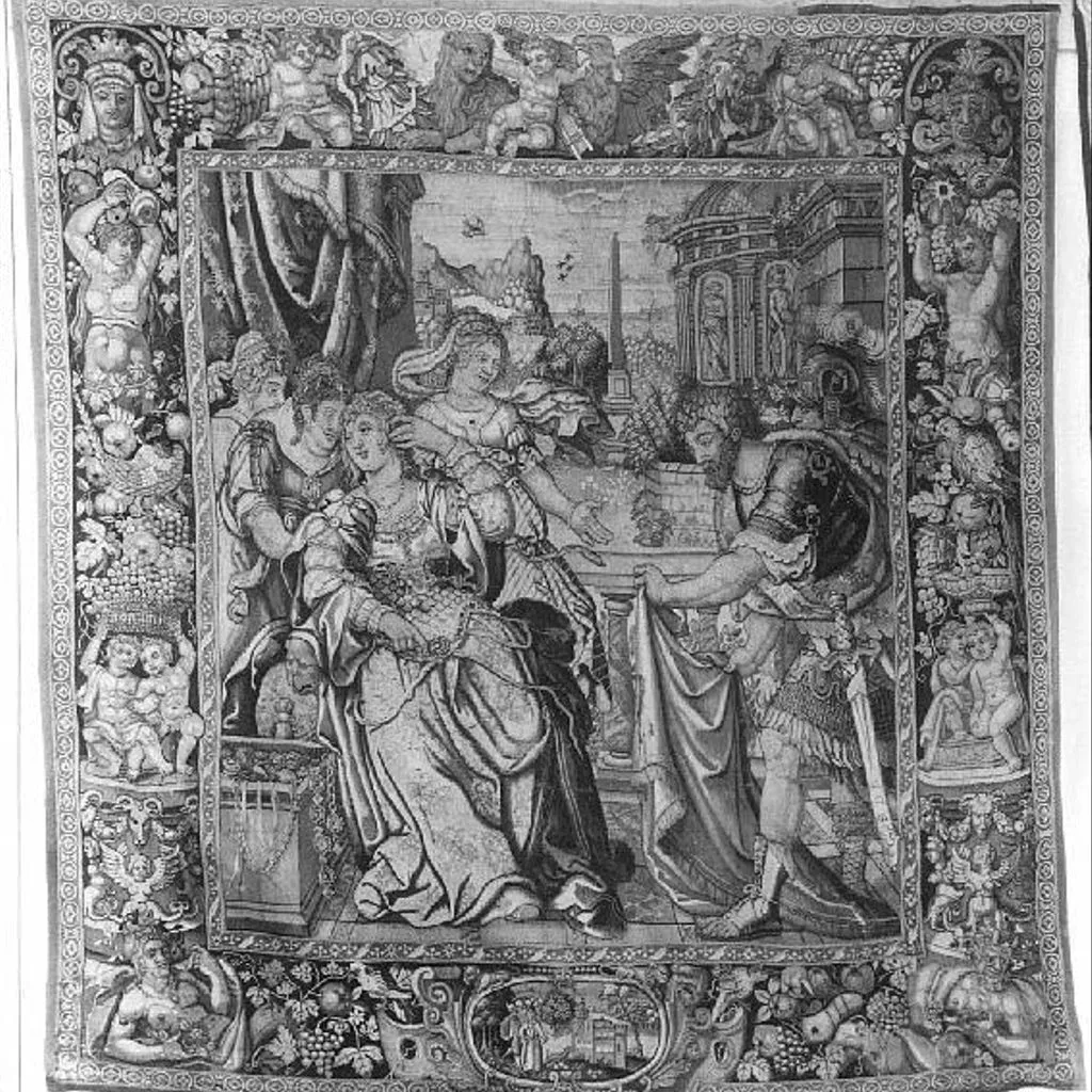 Julie s'évanouit à la vue du manteau ensanglanté de Pompée, d’une tenture l'Histoire de Pompée