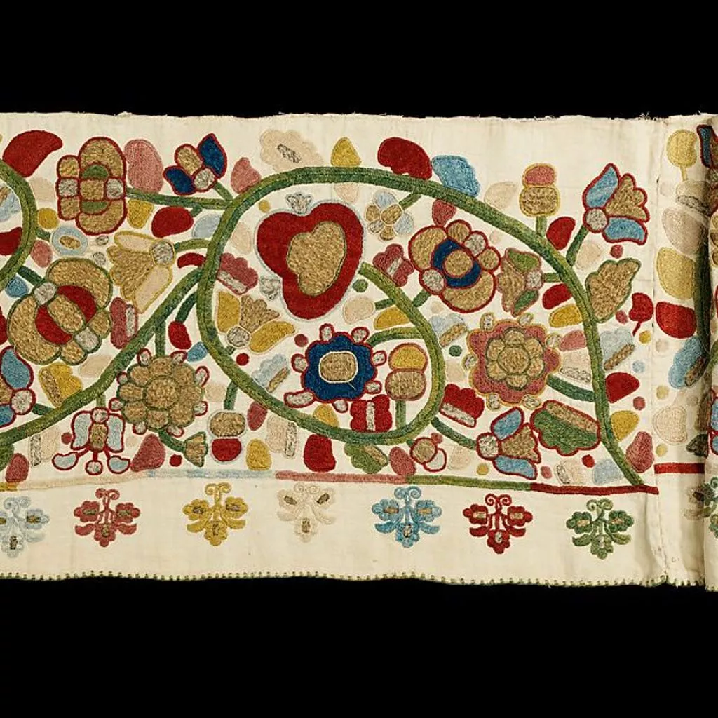 This object is from the collection of Natalia de Shabelsky (1841-1905), a Russian noblewoman compelled to preserve what she perceived as the vanishing folk art traditions of her native country. Traveling extensively throughout Great Russia, she collected many fine examples of textile art of the wealthy peasant class. From the 1870s until moving to France in 1902, Shabelsky amassed a large collection of intricately embroidered hand-woven household textiles and opulent festival garments with rich decoration and elaborate motifs. The Brooklyn Museum holdings include many fine examples including the majority of the garments. Portions of Shabelsky's collection are also housed at the Museum of Fine Arts, Boston, the Cleveland Art Museum, and the Russian Museum of Ethnography in St. Petersburg.