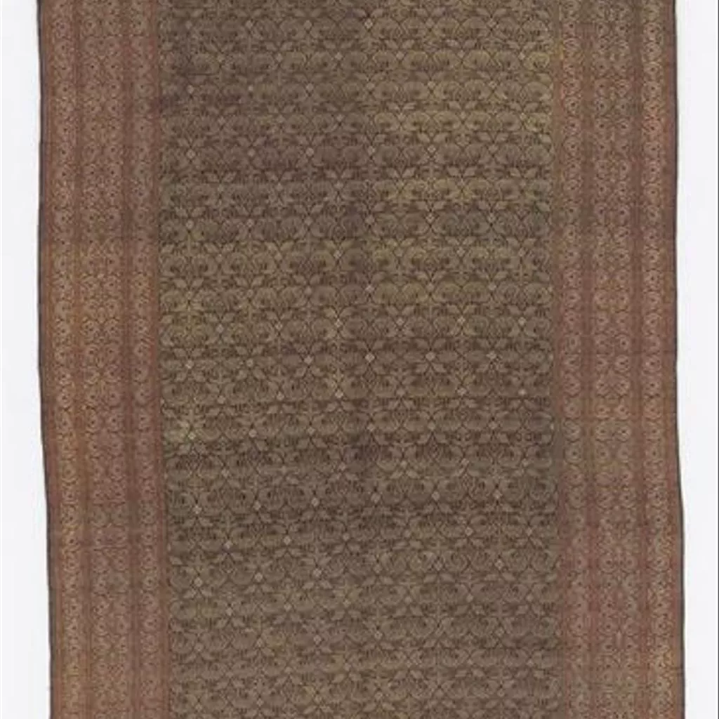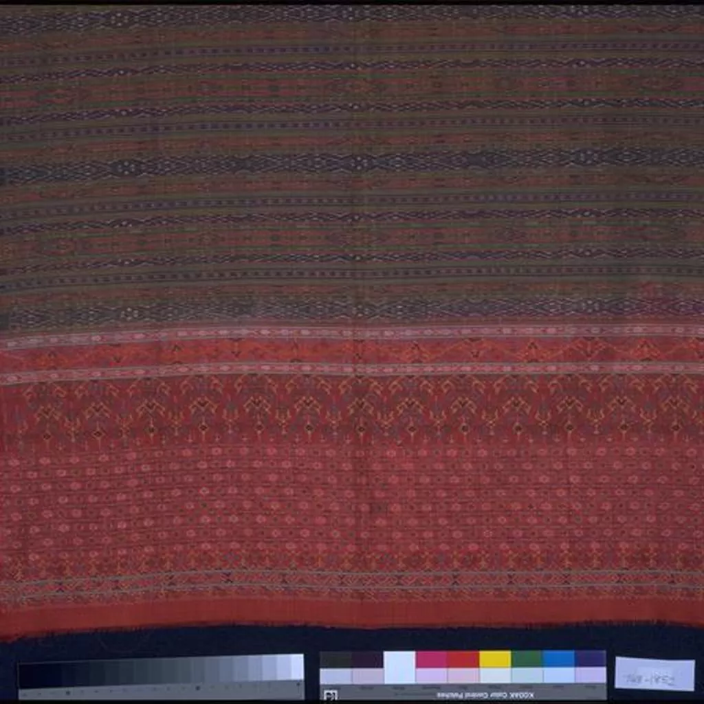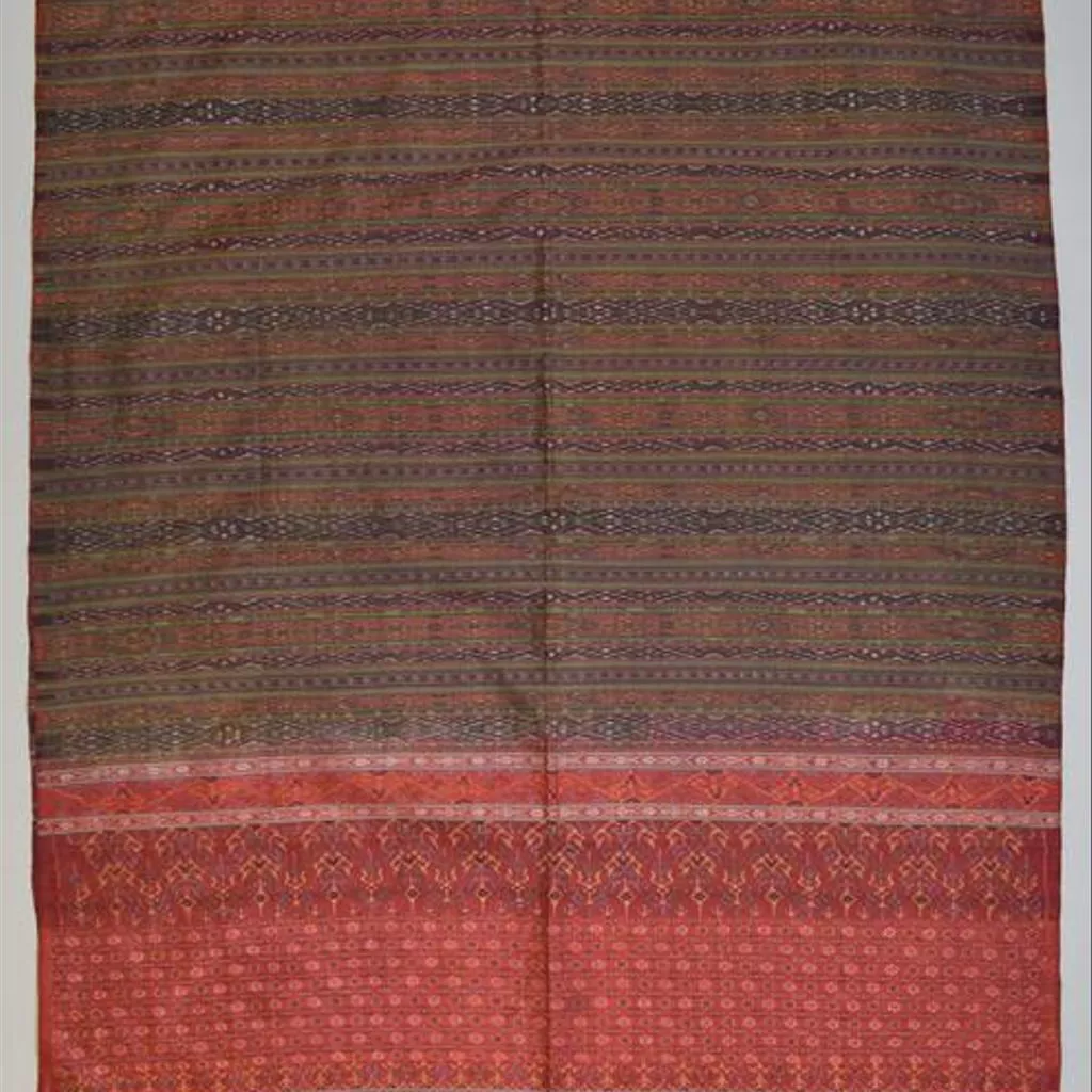 Scarf of woven silk, decorated by weft-ikat. Scarf, weft-ikat patterning on silk, Malaysia, ca. 1850