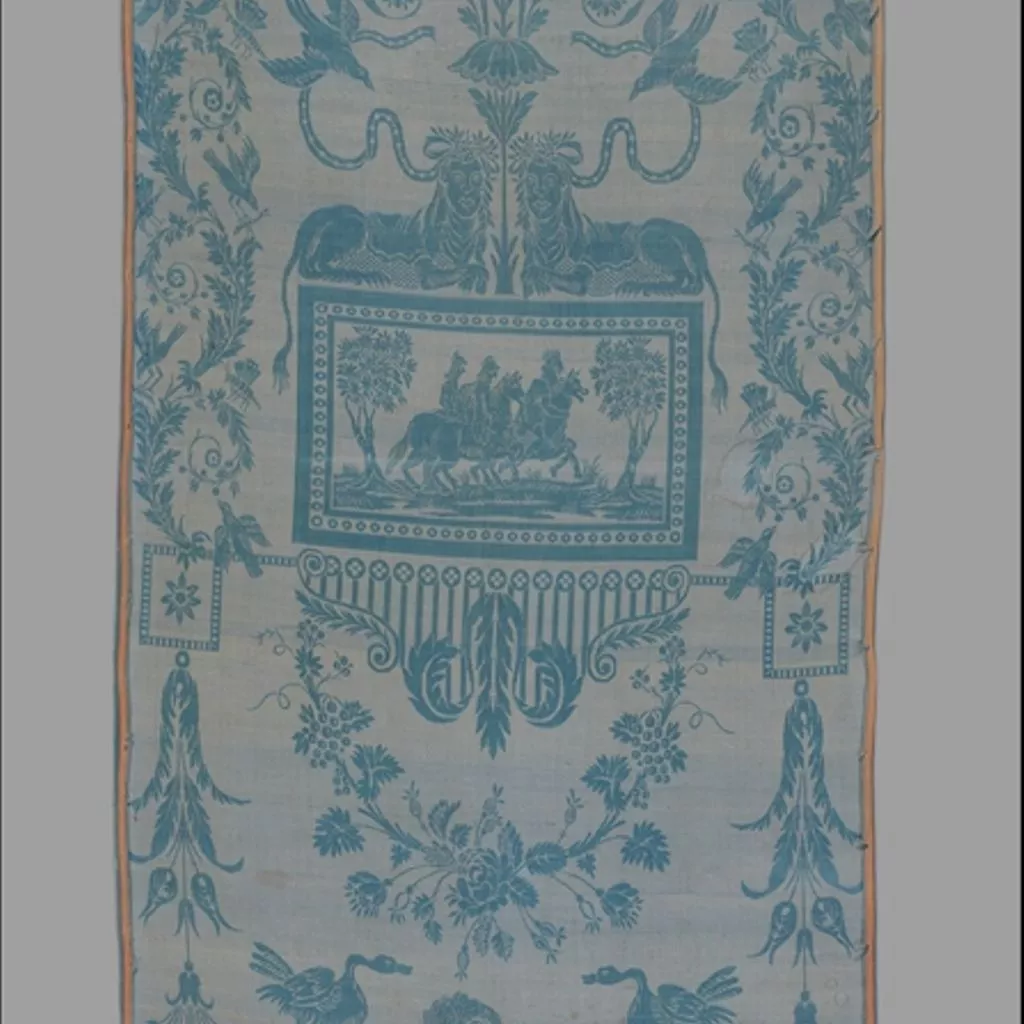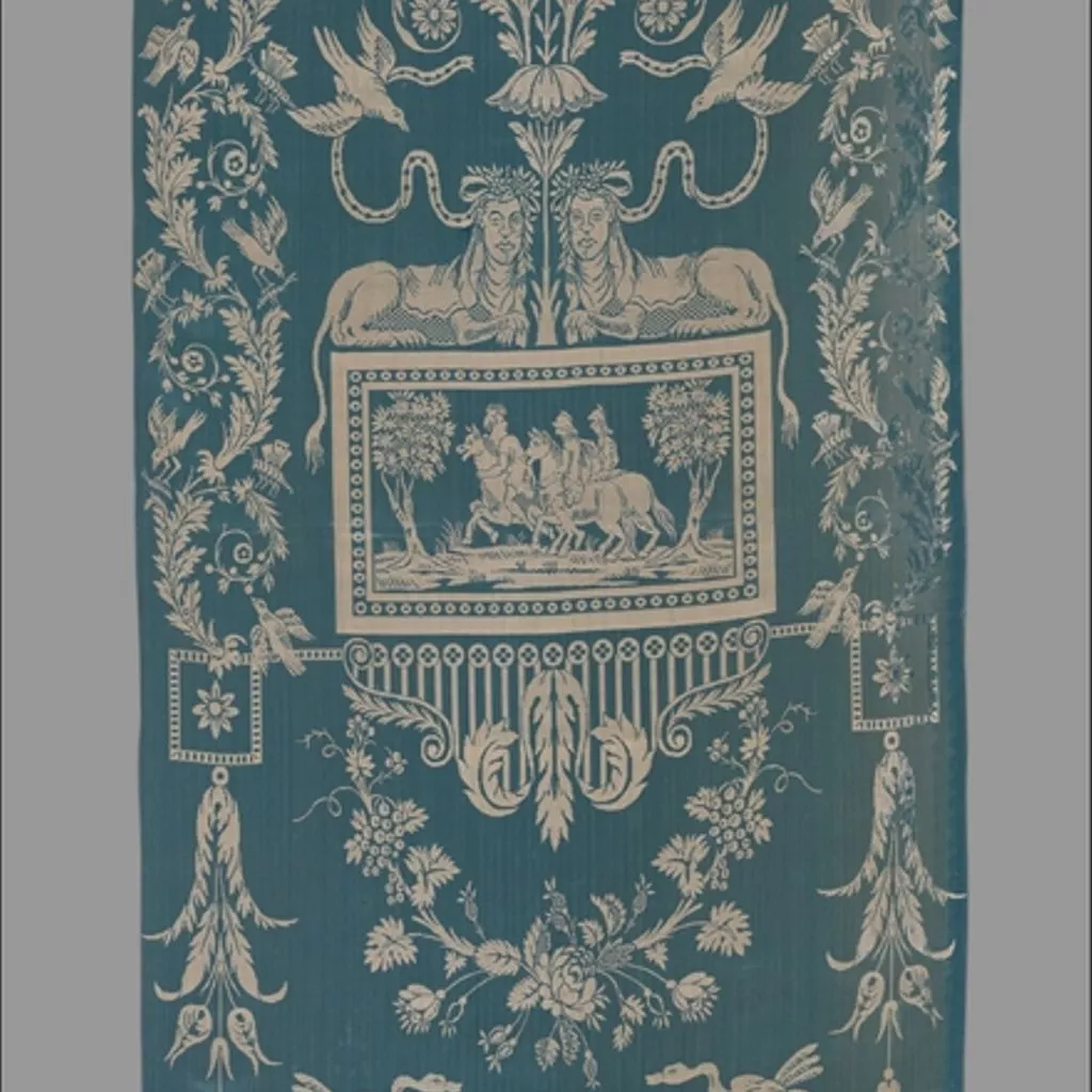 The firm of Camille Pernon in Lyon produced some of the most spectacular silk textiles of the late eighteenth century. They had clients all over Europe, and one of their most prolific designers, Jean Démosthène Dugourc, worked for the Spanish nobility. The dancing putti and satyr motifs in this silk are repeated in a textile designed by Dugourc for King Charles IV of Spain.