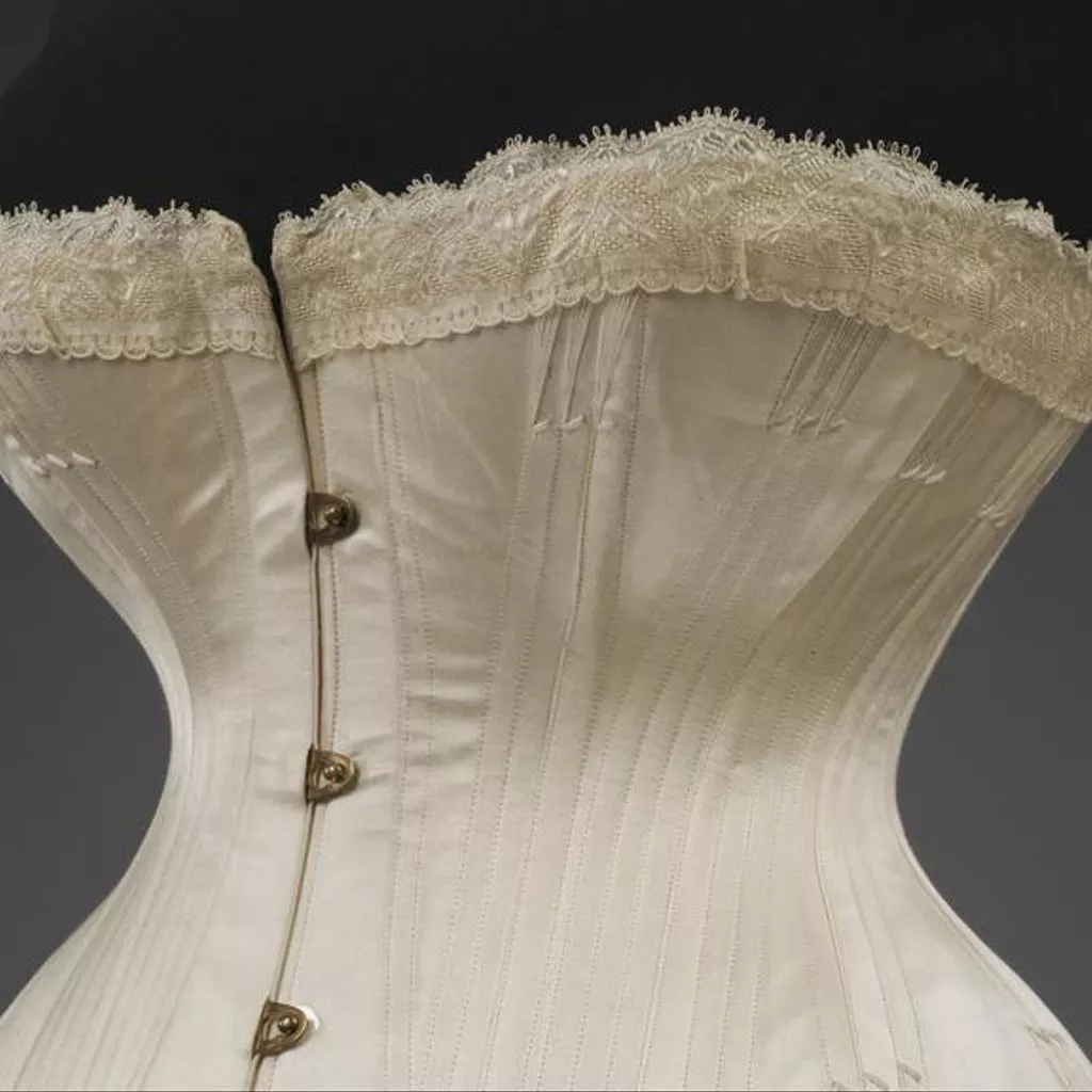 Izod's patent and moulded sewn satin corset, made by Edwin Izod, England, 1887