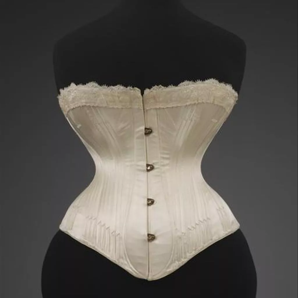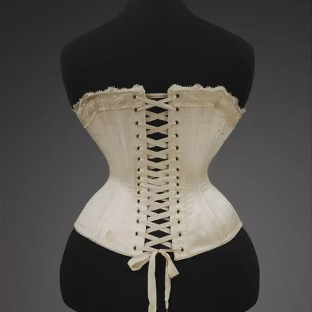 Izod's patent and moulded sewn satin corset, made by Edwin Izod, England, 1887