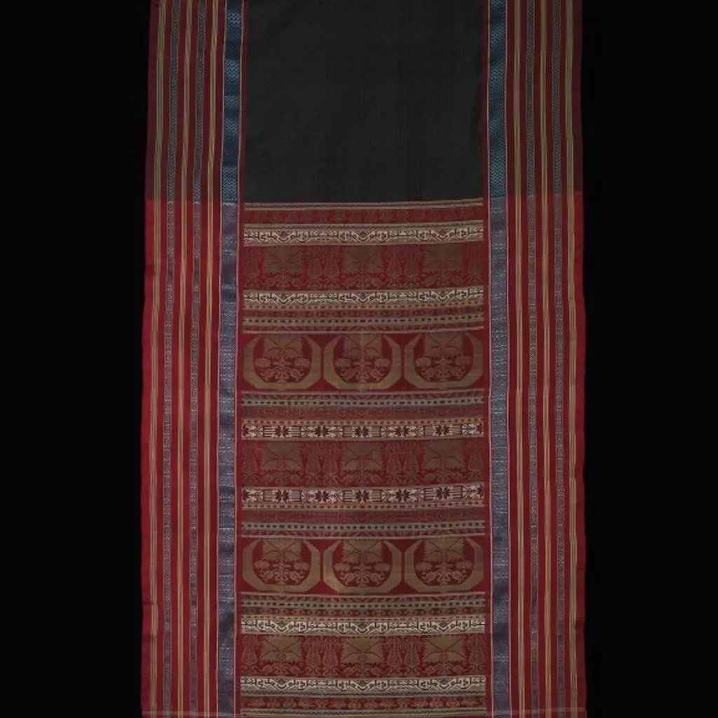 Woven silk veil, known as ajar, Tunisia, ca. 1850 Woven silk veil. Black silk ground with broad coloured and gold borders. This women’s veil is known as an ajar. During the nineteenth century wealthy woman from urban areas in Tunisia used them to cover their face and head while they were out in public. In the centre is a black rectangle that has been woven so finely it is transparent, this would hide the woman’s face while at the same time allowing her to see out. Around the black panel are elaborately decorated woven borders. The motifs show both Turkish and Andalusian influences and an Arabic inscription has been incorporated into the pattern. This ajar was one of seventeen textiles purchased by the V&A from the Tunis stand at the Great Exhibition of 1851, and is therefore one of the first textiles from Africa to have been acquired by the V&A.