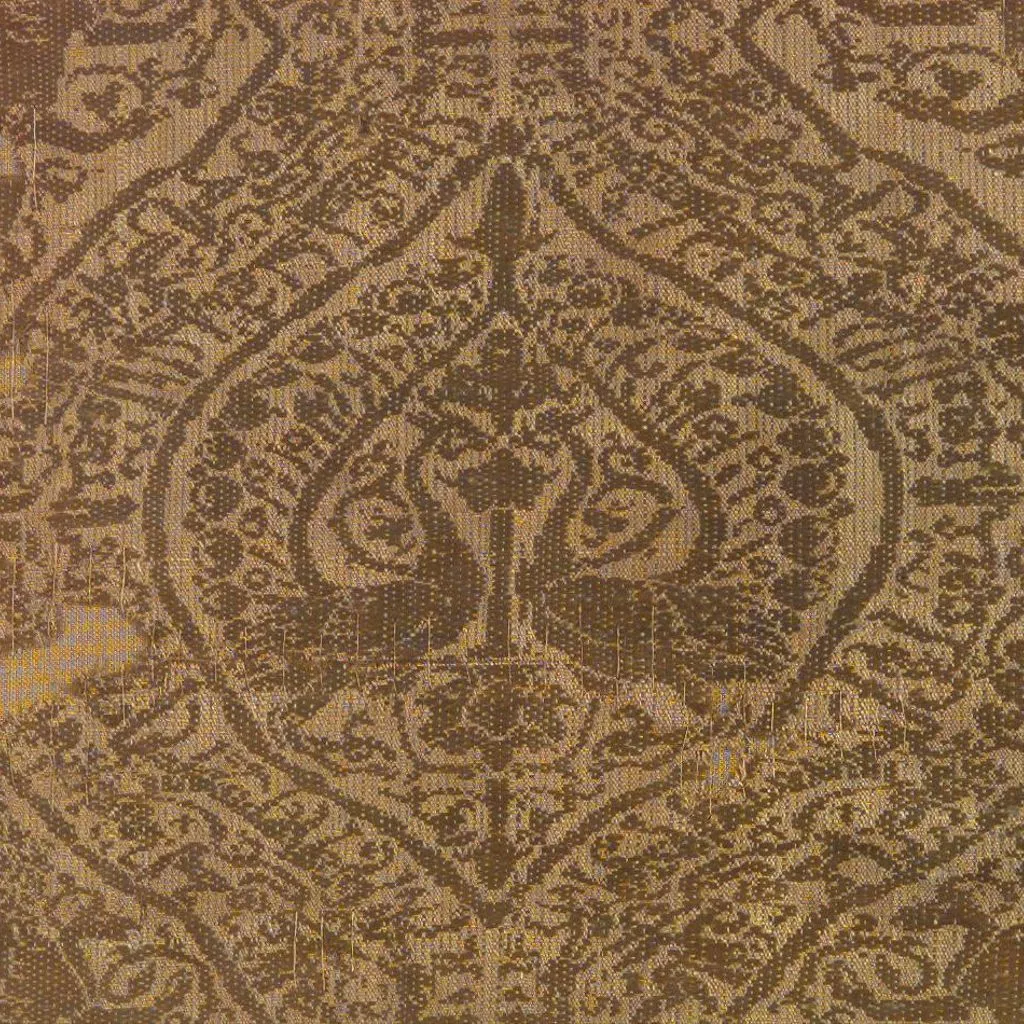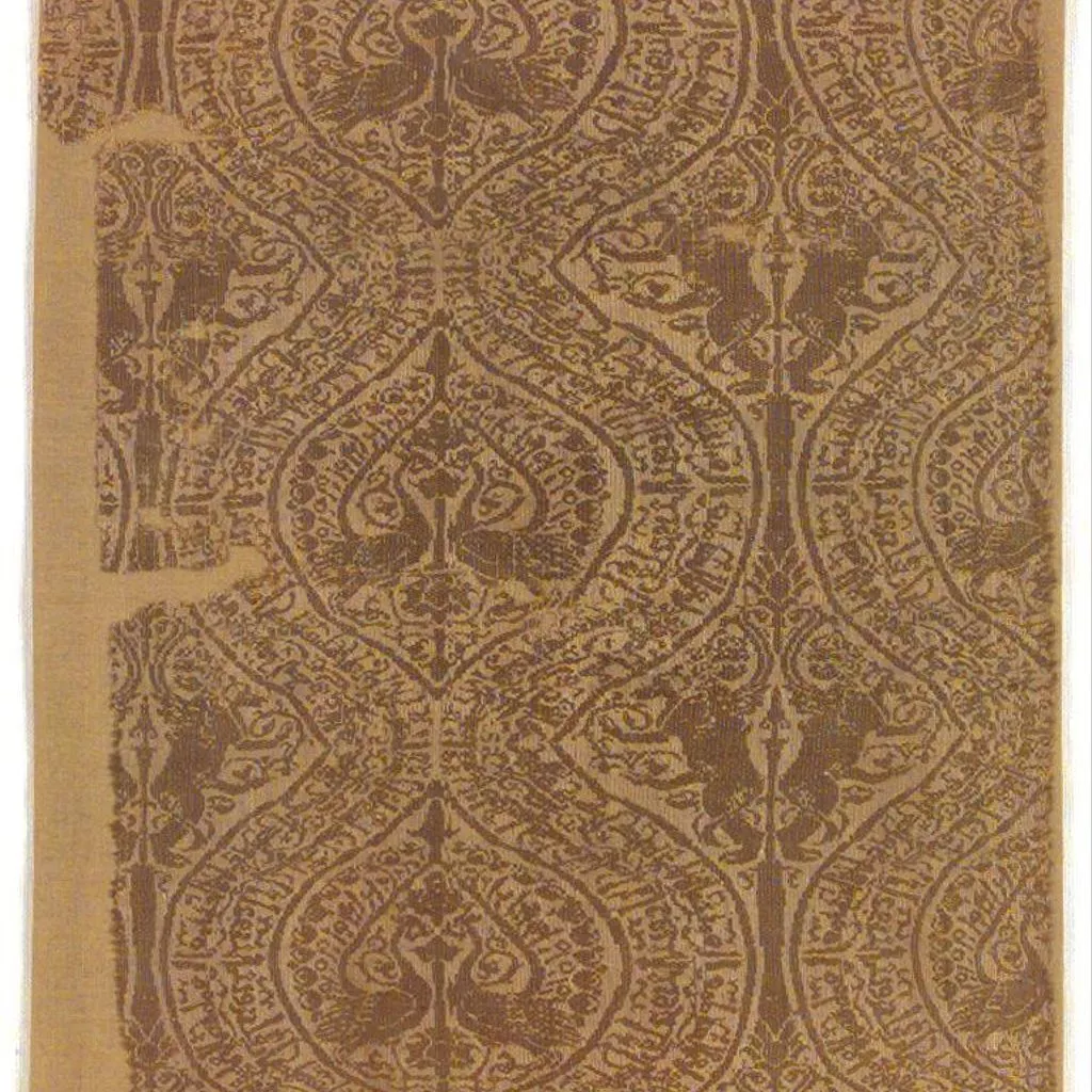 Parelles d'esfinx adossades separades per un arbre de la vida s'inscriuen dins d'una estructura repetitiva de compartiments ogivals, . Alternen la seva disposició amb màndorles que contenen paons afrontats davant un arbre de la vida amb inscripcions cúfiques al seu voltant. Les inscripcions han estat traduïdes com la repetició de dues paraules: “poder i dinastia” y “gloria i poder” (v.Otavsky et ‘Abbas, 1995). D’aquest teixit se’n conserven fragment a diferents museus, de la peça del museu de Cleveland s’ha fet la datació a partir del C14 donant una cronologia aproximada entre el 1027 i 1210, amb un marge de fiabilitat del 95%.