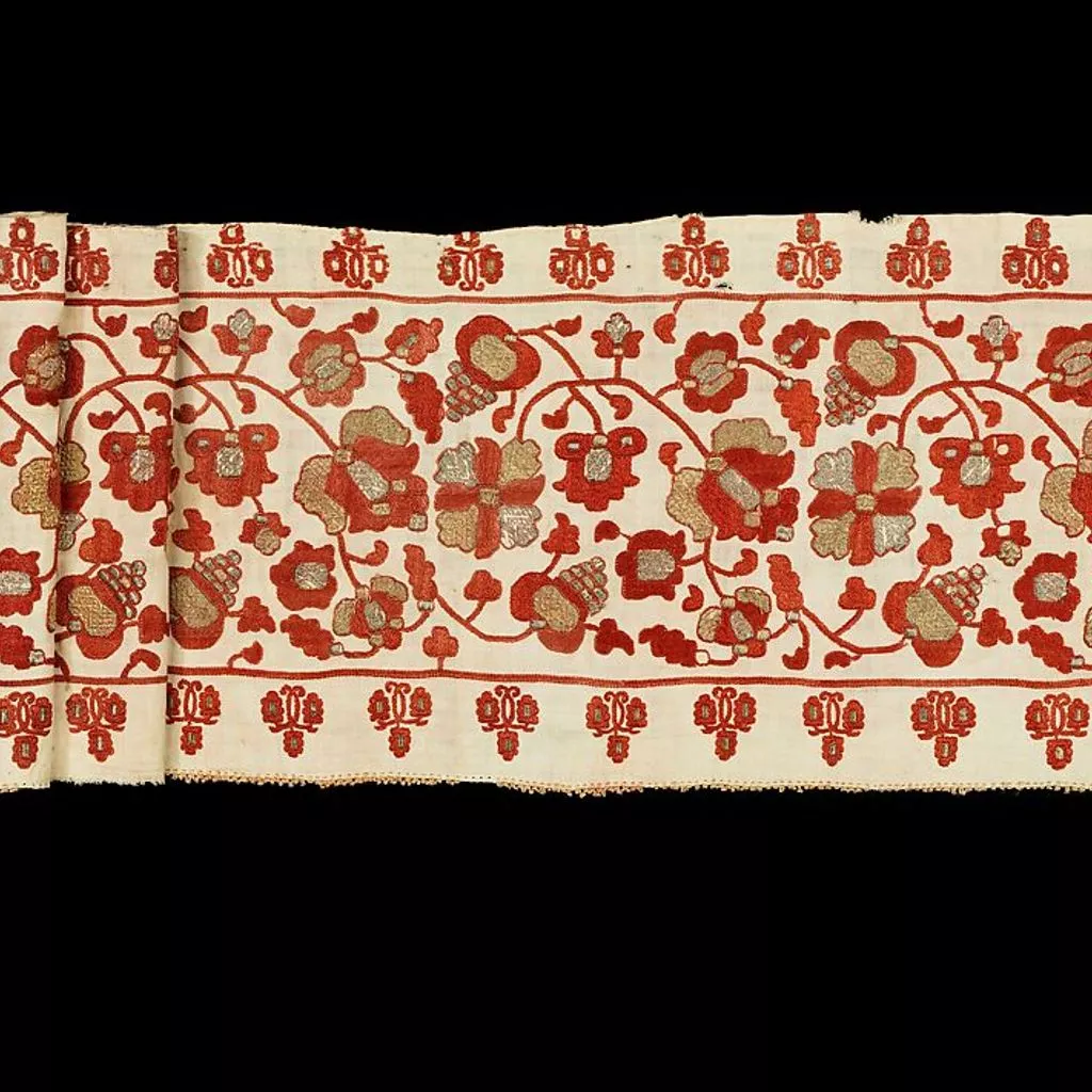This object is from the collection of Natalia de Shabelsky (1841-1905), a Russian noblewoman compelled to preserve what she perceived as the vanishing folk art traditions of her native country. Traveling extensively throughout Great Russia, she collected many fine examples of textile art of the wealthy peasant class. From the 1870s until moving to France in 1902, Shabelsky amassed a large collection of intricately embroidered hand-woven household textiles and opulent festival garments with rich decoration and elaborate motifs. The Brooklyn Museum holdings include many fine examples including the majority of the garments. Portions of Shabelsky's collection are also housed at the Museum of Fine Arts, Boston, the Cleveland Art Museum, and the Russian Museum of Ethnography in St. Petersburg.