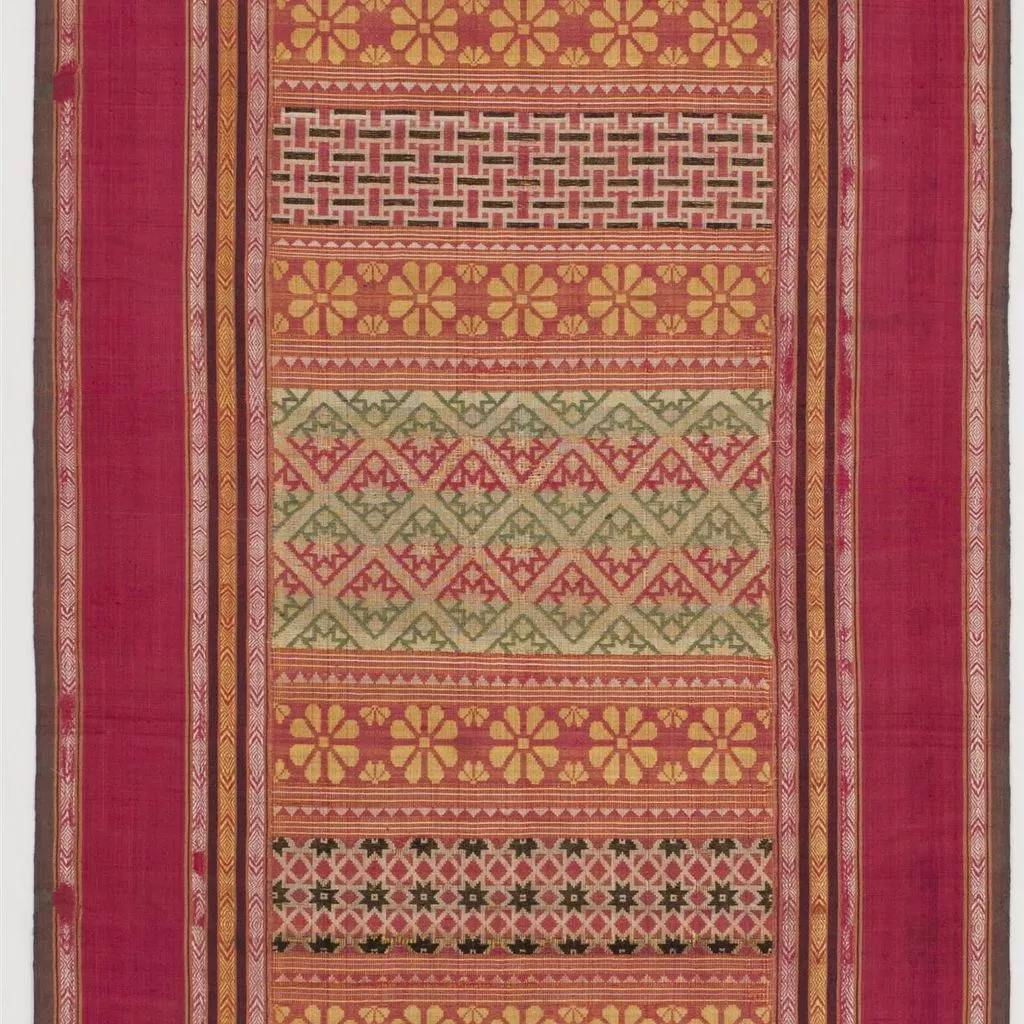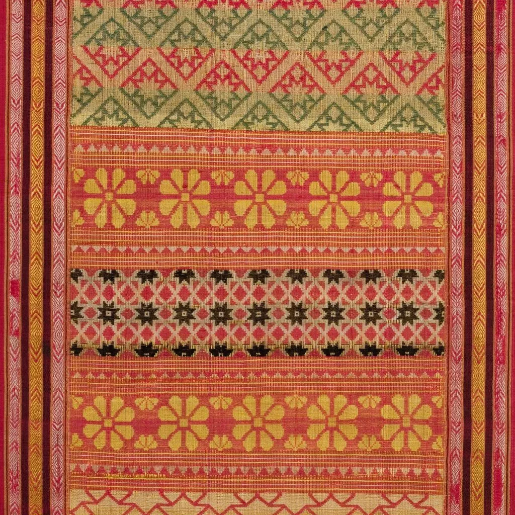 seda; colores: amarillo, negro, rojo y verde; hilos simples; STA