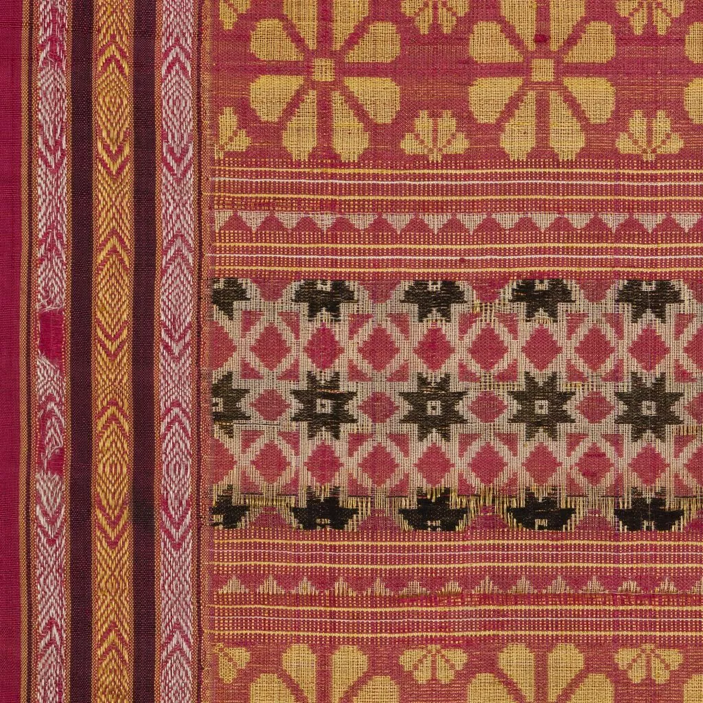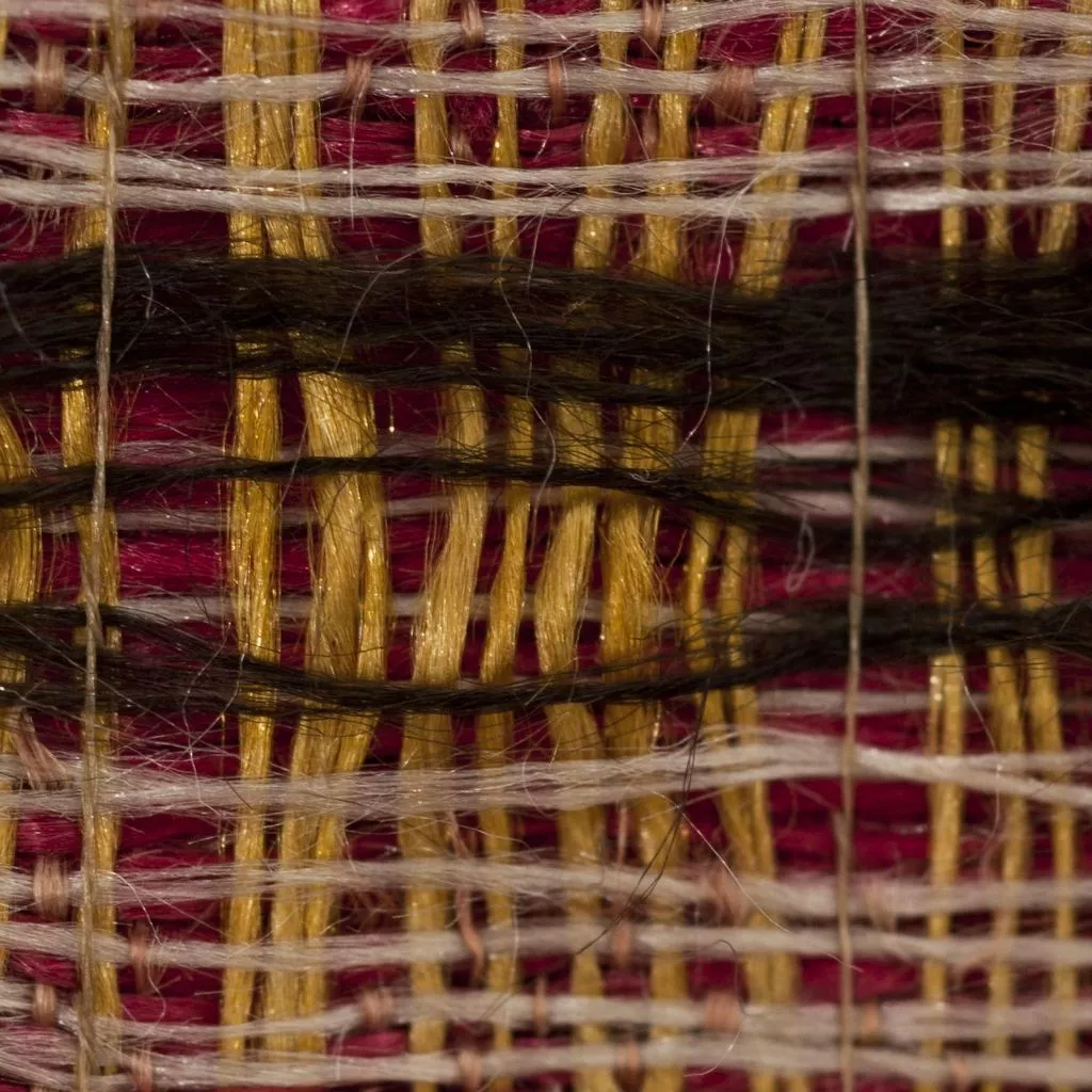 urdimbre de ligadura: seda; color: rojo; hilos simples; STA