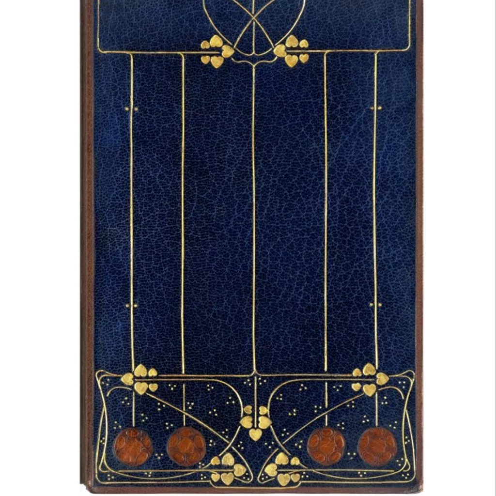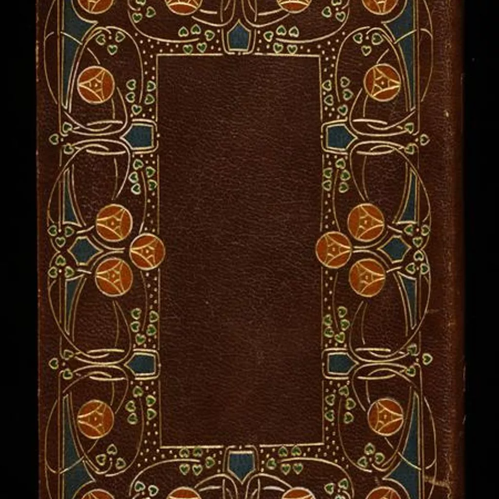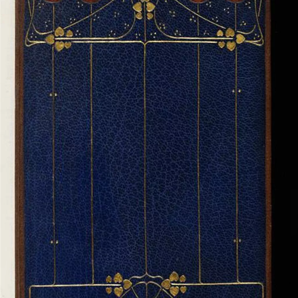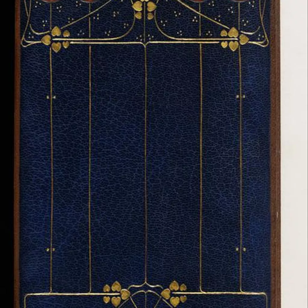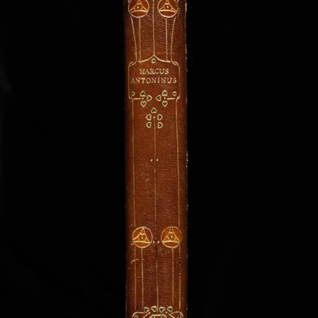 Unique Book 'Marcus Aurelius Antoninus to Himself' translated by Gerald Henry Rendall with fine binding by The Guild of Women Bookbinders. L.1769-1958. Brown leather with gold tooling and coloured leather onlays Blue tooled leather with gold Art Nouveau floral motif decoration with stylised red disc flowers at the top. 146 + 193 p. 12mo.