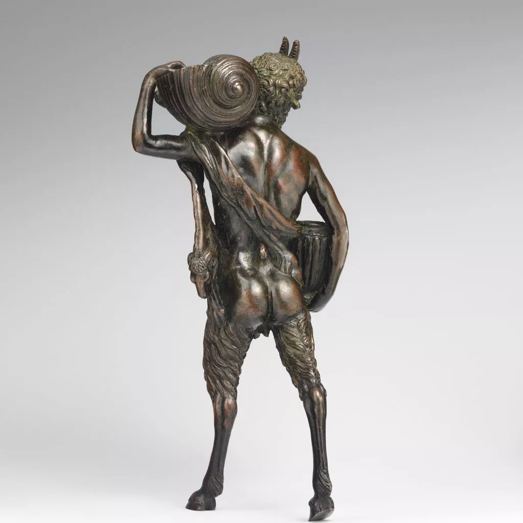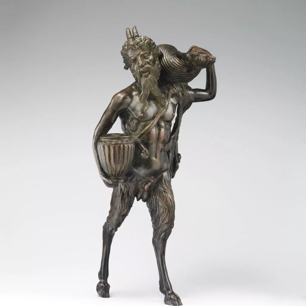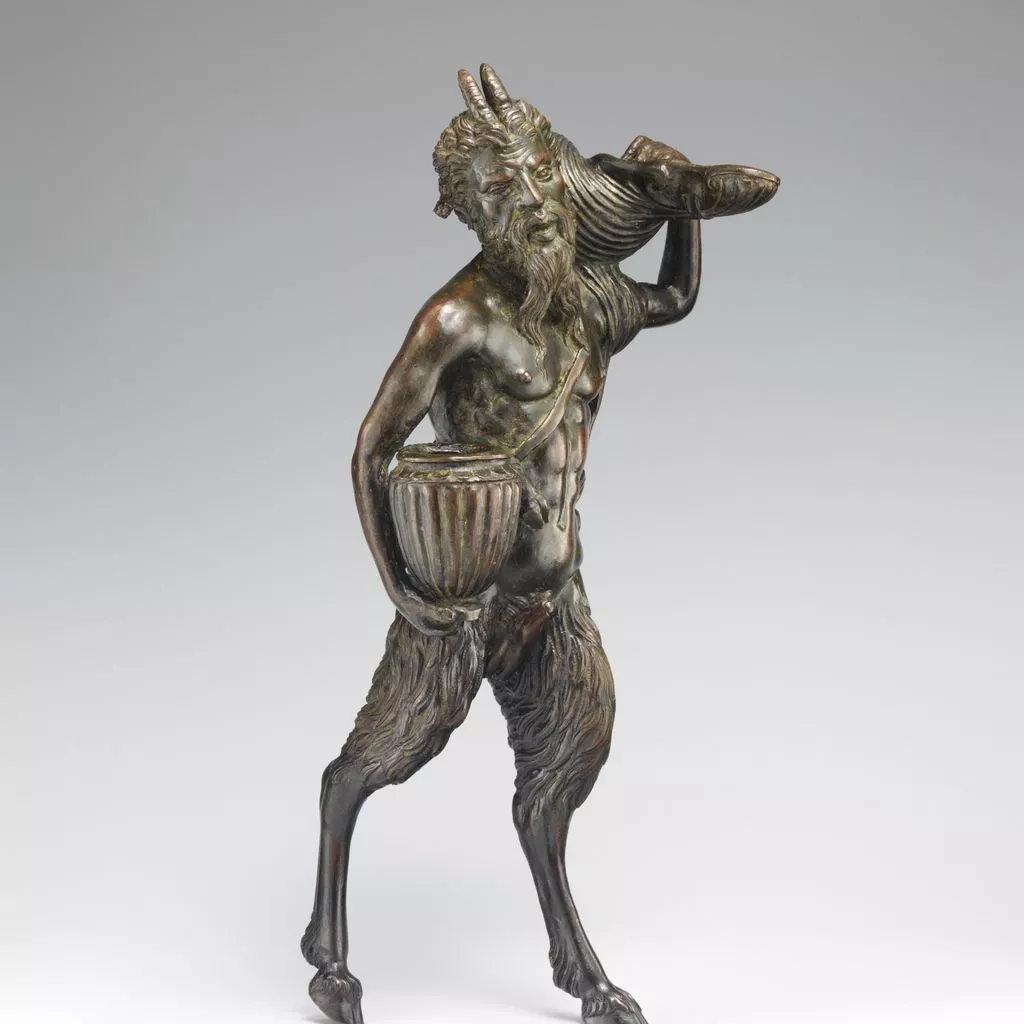 In the half-human, half-animal features of the mythical race of satyrs, Andrea Briosco, called Riccio, found great expressive potential. Furthermore, the creatures’ classical associations appealed to the sculptor’s learned clientele, who purchased the bronze statuettes that were his preferred medium. These diminutive objects could also be made into useful desktop equipment for writing or lighting by placing containers for ink, sand, or oil in the satyrs’ arms. A hole in the shell shouldered by the Museum’s figure may have held a chain to tether a snuffer for candles stuck on the lamp’s pricket, while the gadrooned vase under his right arm would have contained ink. Although it seems almost oversize for its purpose, the statuette was nevertheless a practical object: the lamp was raised high enough to cast a wide light, and the ink was proffered at a reasonable level to dip in a quill. In 1985 Dieter Blume made the interesting proposal, now generally accepted, that this figure, which had long been identified as a satyr, in fact represents Pan, the Greek deity with legs and horns of a goat, whose power over nature could sow panic or stir creation.[1] The flaming oil and ink thus must symbolize both his sway over the elements and the inspiration sought by any scholar who read and wrote with their aid. While functional, it is above all a powerful sculpture. Against the limited group of autograph works by Riccio in this category and the extensive number of workshop productions, this one stands out on account of its large size and forceful presence. Its model is a well-known pair of lifesize antique marble satyr-atlantes once in the Della Valle collection in Rome and today in the Musei Capitolini in that city.[2] Denise Allen is of the opinion that drawings of those ancient satyrs by artists such as Bernardino da Parenzo may have been the sculptor’s actual source.[3] She points out that their upraised arms and the baskets on their heads have been adapted to this small sculpture’s pose and function but that the tensile strength of the metal has been exploited here to widen the creature’s stance into a dynamic stride. Specific features borrowed from the Della Valle satyrs, such as the closely spaced horns, the ram’s skin strapped over the shoulder, and the heavily muscled torso, reveal that Riccio paid close attention to the source.While there is no question that this is a masterful Renaissance bronze, its attribution to Riccio and its date have been debated. The pioneer of Renaissance bronze studies, Wilhelm von Bode, was the first to propose Riccio as the artist, and his opinion was enthusiastically seconded by the foremost expert on North Italian bronzes, Leo Planiscig.[4] Some scholars have recently returned to the question of authorship, noting some anomalies in the statuette’s physical characteristics, particularly the pronounced musculature of the torso and the relatively wide waist. For example, Denise Allen, who finds that the closest comparison for the treatment of the torso is the nude beggar in Riccio’s Saint Martin relief (Galleria Giorgio Fraschetti alla Ca’ d’Oro, Venice; probably after 1513), observes that the beggar’s waist is narrower and his chest smoother than Pan’s.[5] Its closest counterpart, she notes, is the Seated Satyr with a Conch Shell in the Museo Nazionale del Bargello, Florence, which also has an animal skin strapped to the chest and holds similar (though not identical) objects, which, like Pan’s shell and vase, were chosen from a stock of models used in accepted works by Riccio. But the Seated Satyr is sometimes attributed to a sculptor in Riccio’s workshop and dated to the 1520s, which raises questions about the Metropolitan Museum’s bronze. Many features do favor Riccio’s authorship. The striding pose is also found in the artist’s Warrior and Strigil Bearer (both are in private collections);[6] in fact, Riccio demonstrated an interest in testing to the limit the balance of many of his sculptures, and this example is no exception. Richard E. Stone has identified technical qualities that keep Pan within the boundaries of Riccio’s working manner. [7] He notes that the composition of the bronze used here and in the Strigil Bearer and Shouting Horseman (Victoria and Albert Museum, London) is characterized by a medium tin content, light leading, and the same pattern of minor trace elements; moreover, the core pins of all three are very thin. James Draper originally placed Pan early in Riccio’s career, about 1507 – 10; however, as Allen proposes, the statuette’s forceful stance and musculature may be better explained as the product of his mature style. Perhaps Riccio adjusted his later style to suit a particular client, as Nicholas Penny wondered.[8][Ian Wardropper. European Sculpture, 1400–1900, In the Metropolitan Museum of Art. New York, 2011, no. 15, pp. 54–55.]Footnotes: [1] Dieter Blume. "Beseelte Natur und ländliche Idylle." In Natur und Antike in der Renaissance, pp. 173–97. Exh. cat. Liebieghaus, Frankfurt am Main; 1985–86. Frankfurt, 1985, pp. 184 – 85.[2] Francis Haskell and Nicholas Penny. Taste and the Antique: The Lure of Classical Sculpture, 1500–1900. New Haven, 1981, pp. 301 – 3, no. 75, figs. 158, 159.[3] Denise Allen in Andrea Riccio: Renaissance Master of Bronze. Exh. cat. by Denise Allen, with Peta Motture et al. Frick Collection, New York; 2008–9. New York and London, 2008, p. 149, fig. 8.2.[4] Wilhelm von Bode. Die italienischen Bronzestatuetten der Renaissance. 3 vols. Berlin, 1907–12. [Vols. 1 and 2 published 1907.], vol. 3, pp. 22, 29, pl. ccxliii; Planiscig 1927, pp. 346 – 47, 484, no. 116, fig. 417.[5] Allen in Riccio 2008, p. 147.[6] Warrior is in a private collection in the United Kingdom; Strigil Bearer is in the collection of Mr. and Mrs. J. Tomilson Hill, New York. [7] Richard E. Stone. "Riccio: Technology and Connoisseurship." In Riccio 2008, pp. 81–96, pp. 88 – 90.