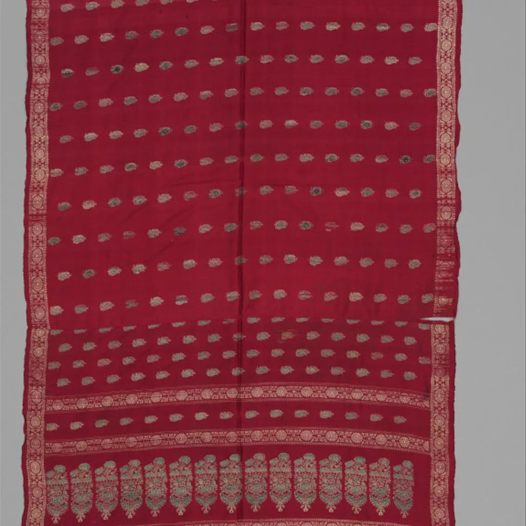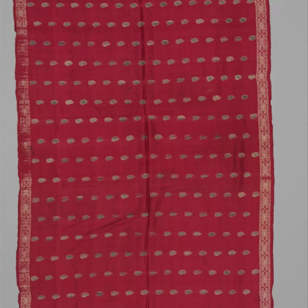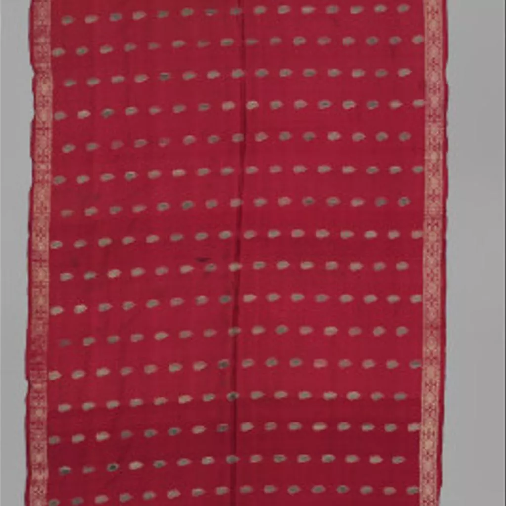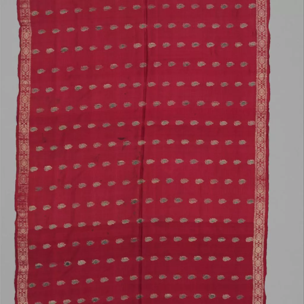 Sari of brocaded silk, Bengal, 19th century Sari of brocaded silk with shawl-type borders. Red ground.