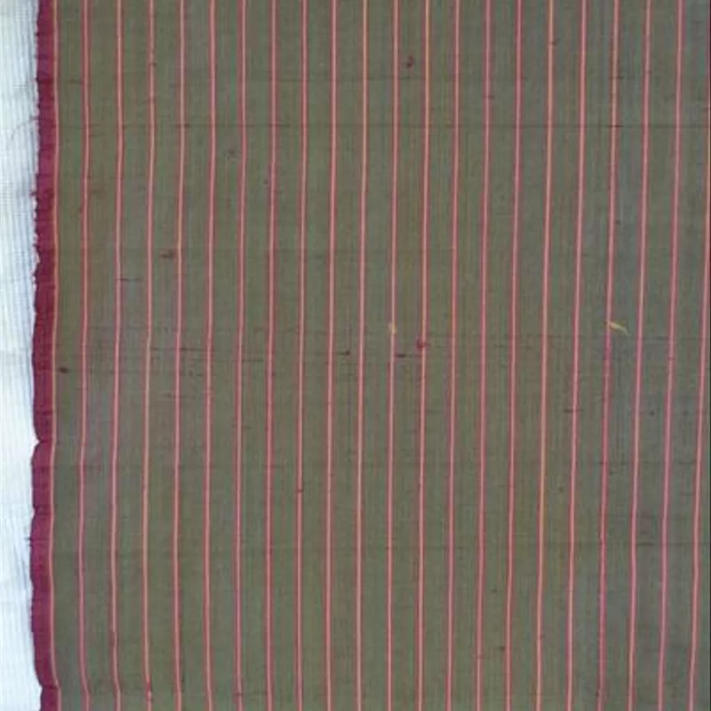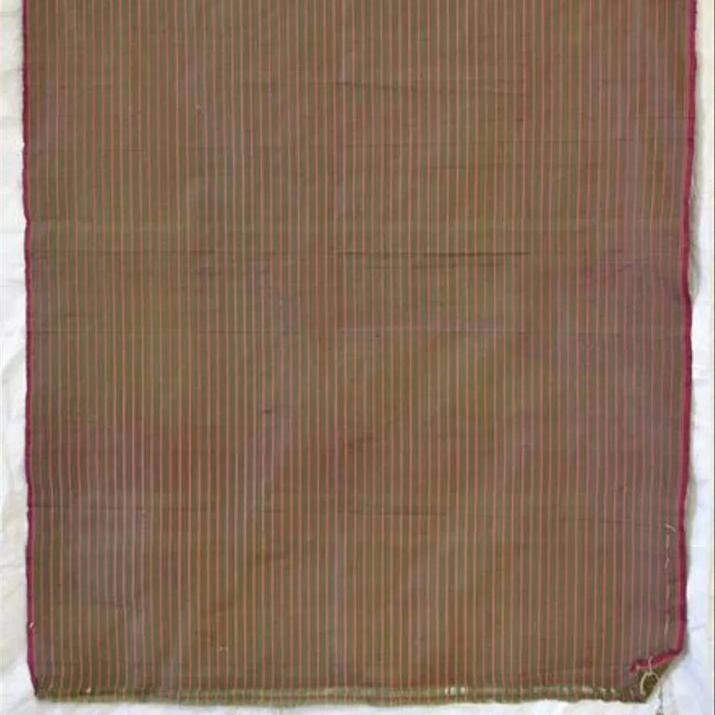Textile, striped woven shot green and pink silk, Dera Ismail Khan, ca. 1855 Cut length of woven silk, green shot with pink, with pink and white stripes and pink borders.