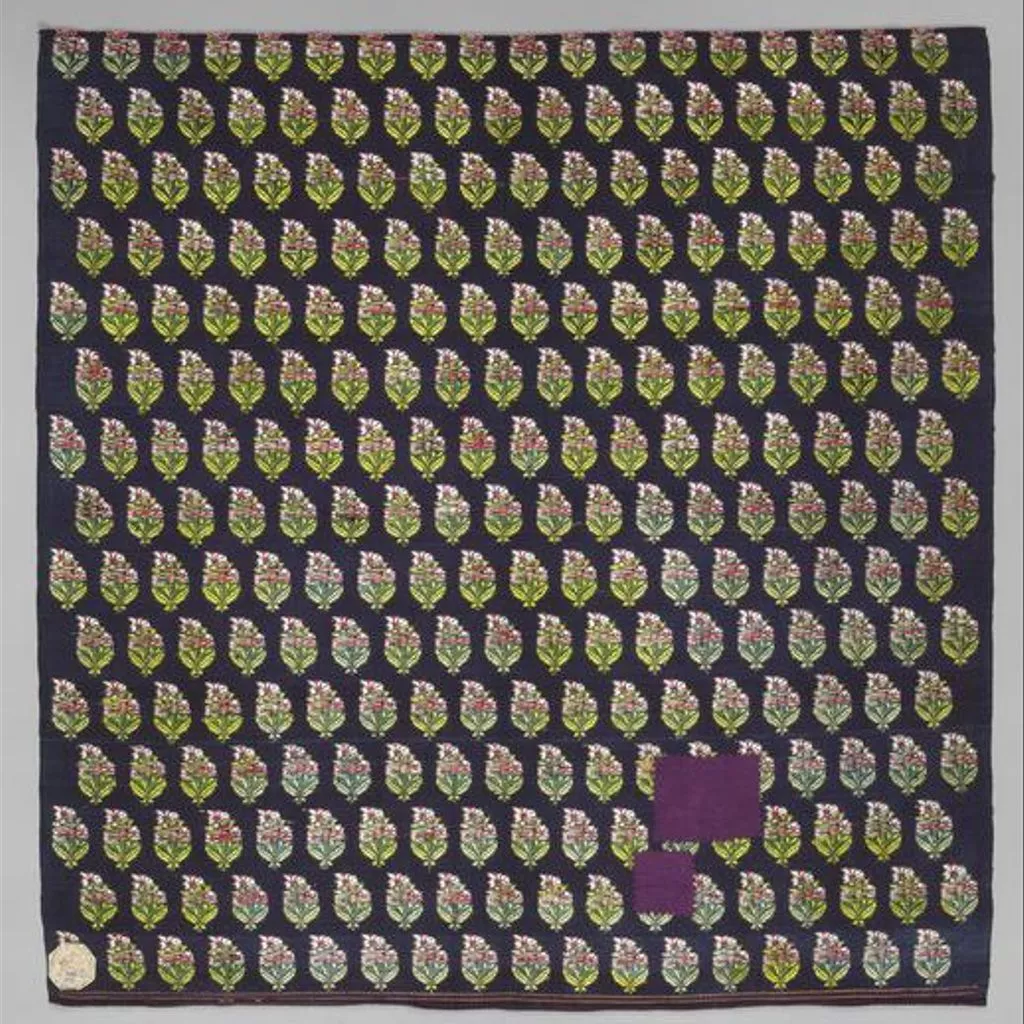 This textile was illustrated in Henry Hardy Cole's 1874 Catalogue of the Indian collection at the South Kensington Museum as an example of good design. It was also featured in Owen Jones's book, The Grammar of Ornament, (London, 1856).