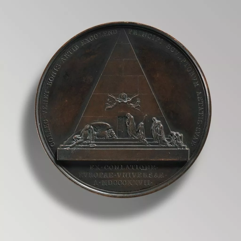 Canova's monument in the Church of Santa Maria dei Frari in Venice was executed in 1827 by his pupils after his unrealized project for the Tomb of Titian in that same church. Canova himself had adapted the project previously for the mausoleum of the Archduchess Christiana in Vienna.