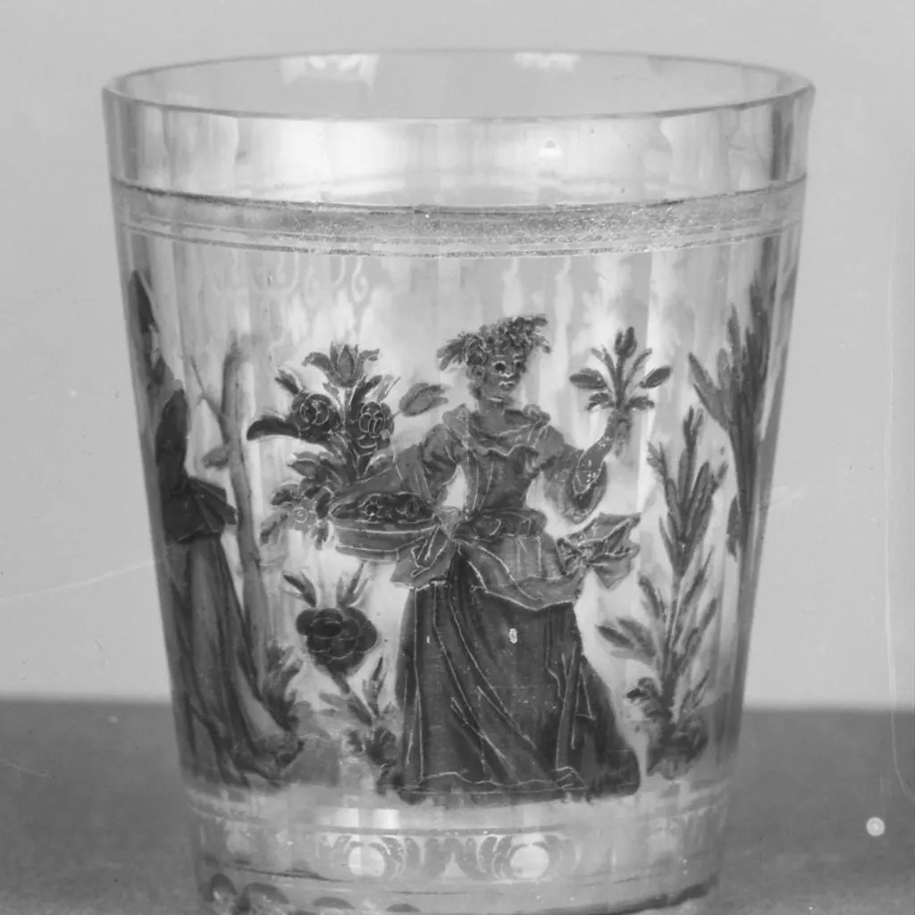 This beaker is decorated with figures personifying the Seasons. See a related wineglass (27.185.168) with figures representing the Seasons.