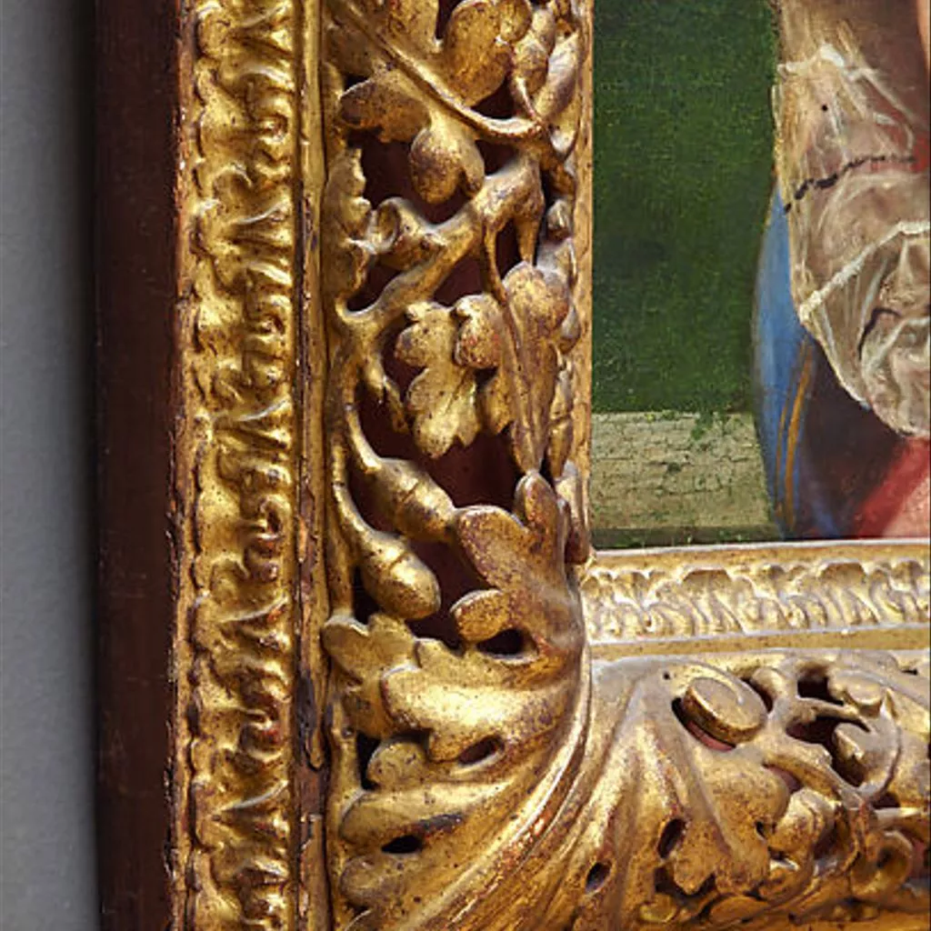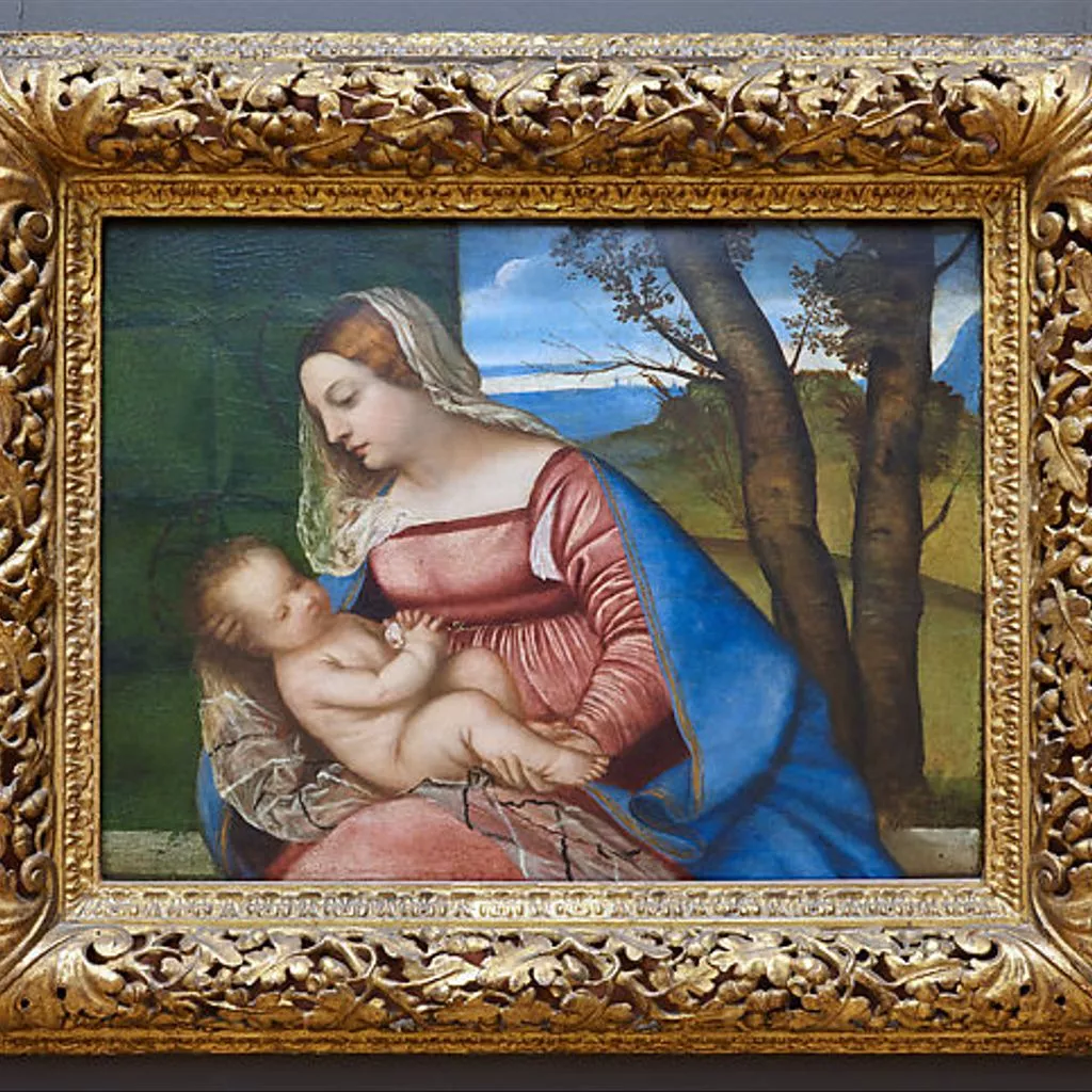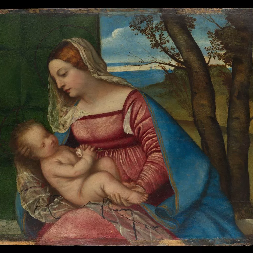 This is among the earliest devotional paintings of the Madonna and Child by Titian, dating to about 1508. Technical study has revealed that the artist first posed the figures sitting erect and in the center of the canvas, a composition closer to those by Giovanni Bellini. The final pose is more informal and suggests a tender rapport between the mother and child. The picture has been strongly cleaned in the past and has lost much of its delicacy of definition.