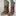 One side of a pair of woman's boots made of leather lined with woollen felt appliqué and embroidered, from Shache (Yankand), China, ca. 1873 One side of a pair of boots made of leather lined with red and green woollen felt appliqué, and with elaborately embroidered floral motifs in a combination of silk and woollen threads on its upper and its cuff, and with a blue-painted hemp layered at the top of the pitched cuff. A front vamp lined with magenta-dyed cotton/woollen ends, and edged with chagrin (or shagreen) between its upper and wooden sole and 4 cm high heel painted, and layered with leather at the bottom. Most likely worn by women from the city of Yarkand (also known as Shache in Chinese) at festive occasions.