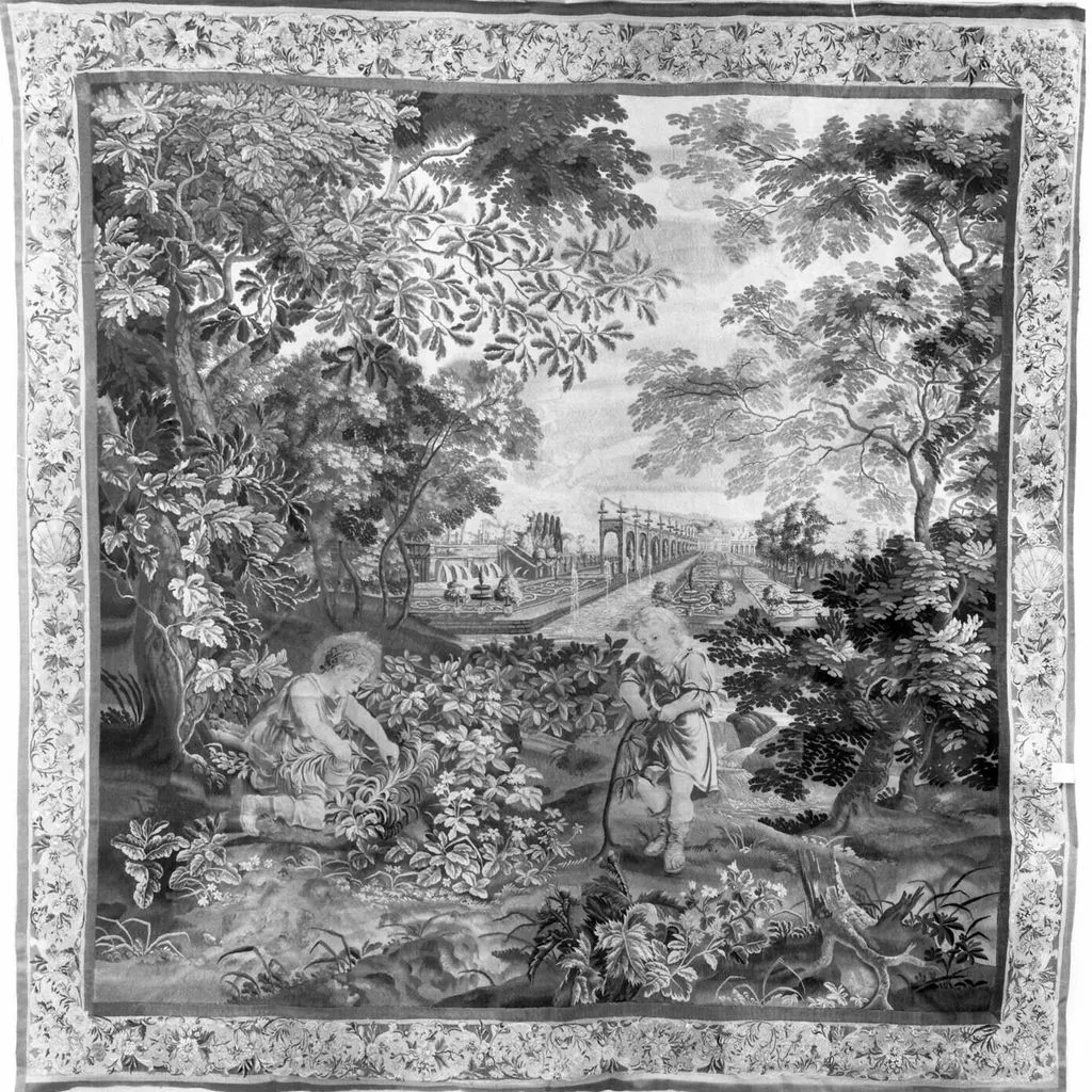 Enfants taillant et nettoyant, d'une tenture des Enfants jardiniers.