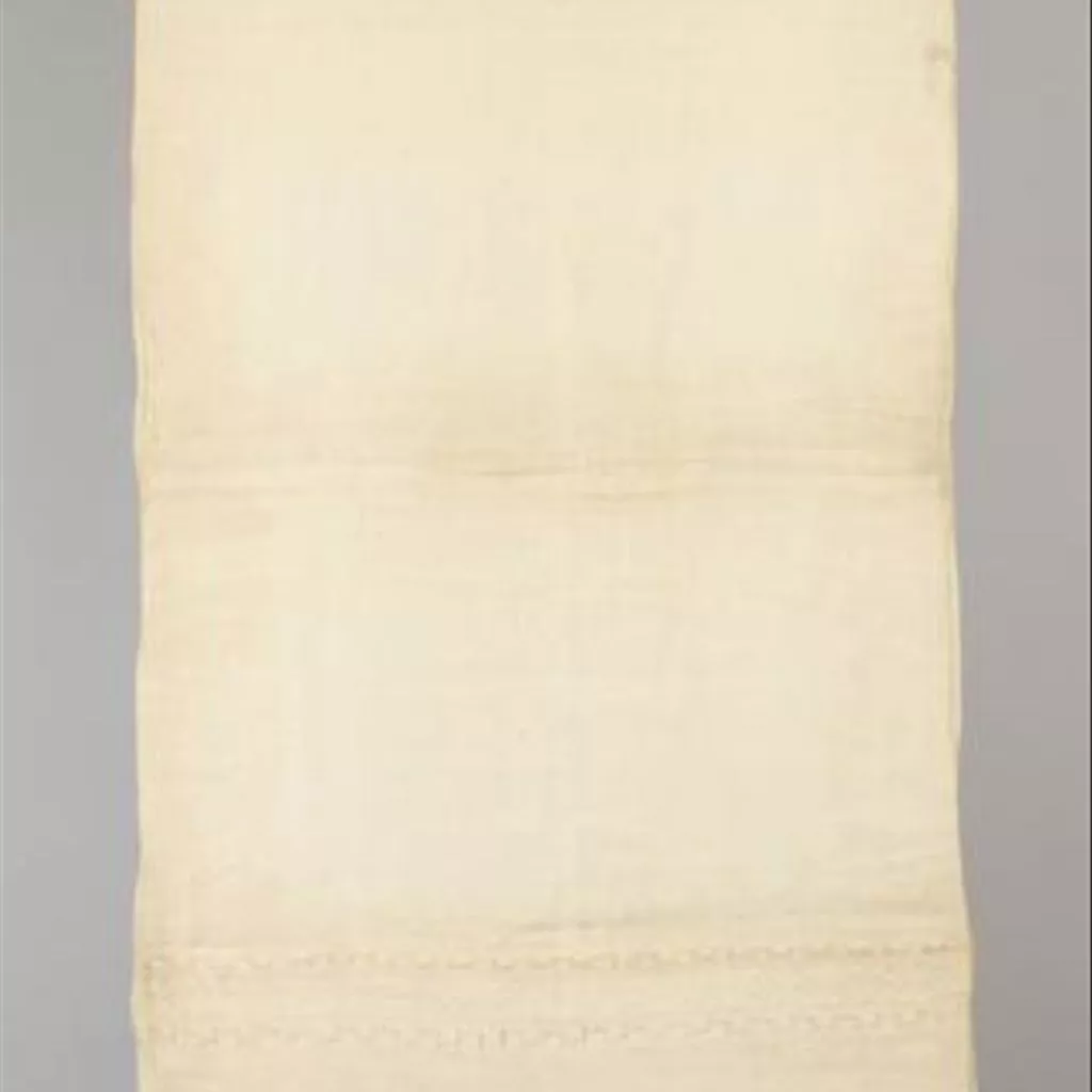 Cotton embroidered with silk and cotton, possibly made in Sporades or Dodecanese, ca. 1850 Towel of white cotton with the ends embroidered with silk and cotton in stripes and mixed with open work.